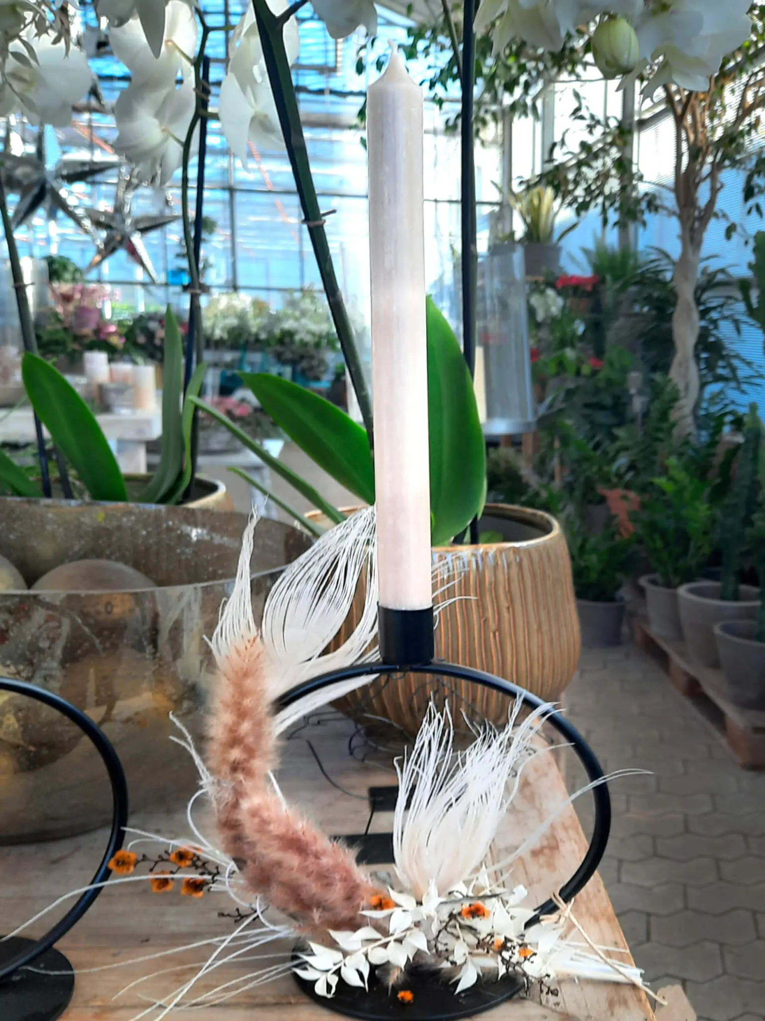 Im Winter herrschen in der Floristik vor allem die Farben Rot und Grün vor, aber auch ein dunkles Lila und natürlich Gold und Silber erinnern uns an die besinnliche Adventszeit. Bei uns finden Sie für diese Zeit eine Vielzahl von Kränzen und Dekorationen für drinnen und draußen. Wir fertigen moderne, aber auch klassische Adventsdekorationen mit Tannenzapfen und -zweigen, Kerzen und Engeln.