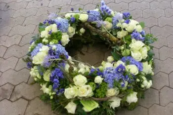 Wunderschön! Alle vier Kränze, auch das Gesteck für den Sarg und die zusätzliche „Waldschale“ für das Grab meines Vaters.