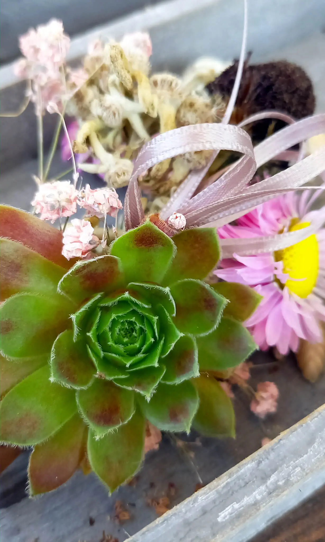 Unsere Floristinnen zaubern wunderschöne Geschenke, Dekorationen und sogar Brautsträuße mit Hauswurz. Sie passt zu Rosen, Gräsern und allen sommerlichen Dekoideen.